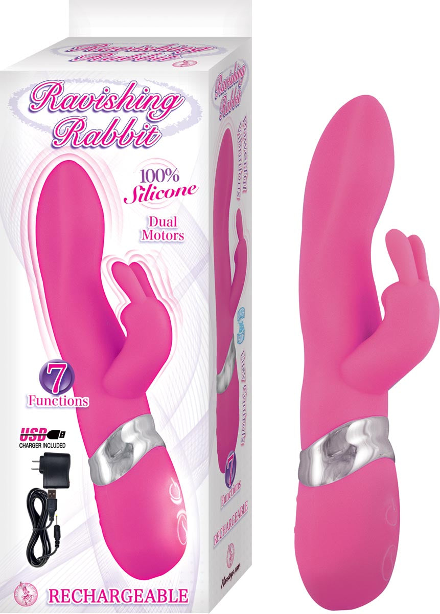 Ravishing Rabbit 100% Silicone, 7 functions, Dual motors, USB charger included, Waterproof, Phthalates free, Length: 8.25", Insertable length: 4", Rechargeable, no batteries needed